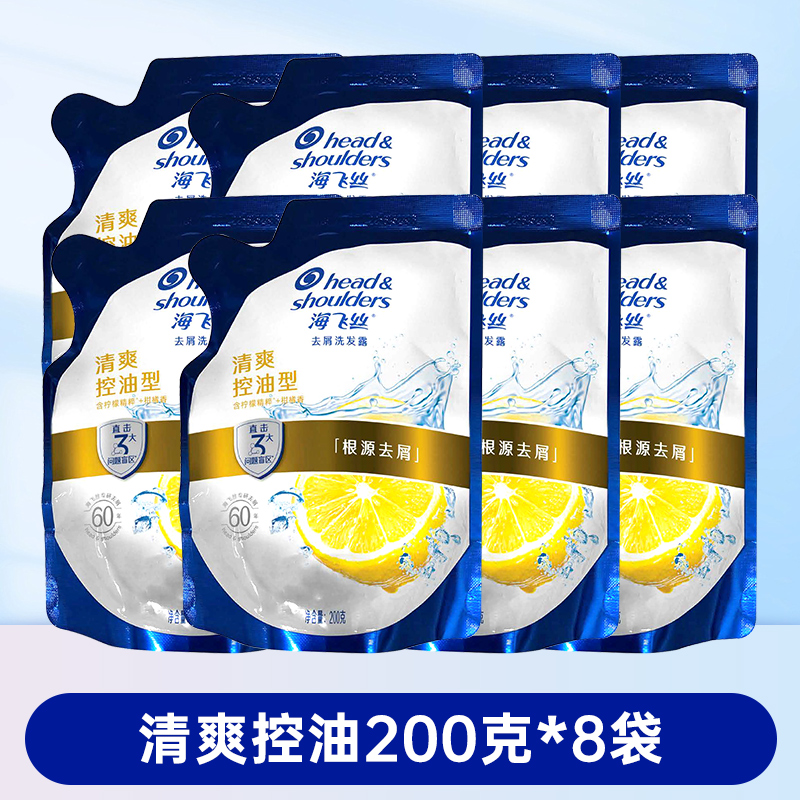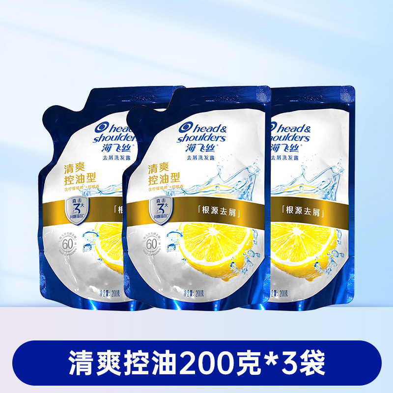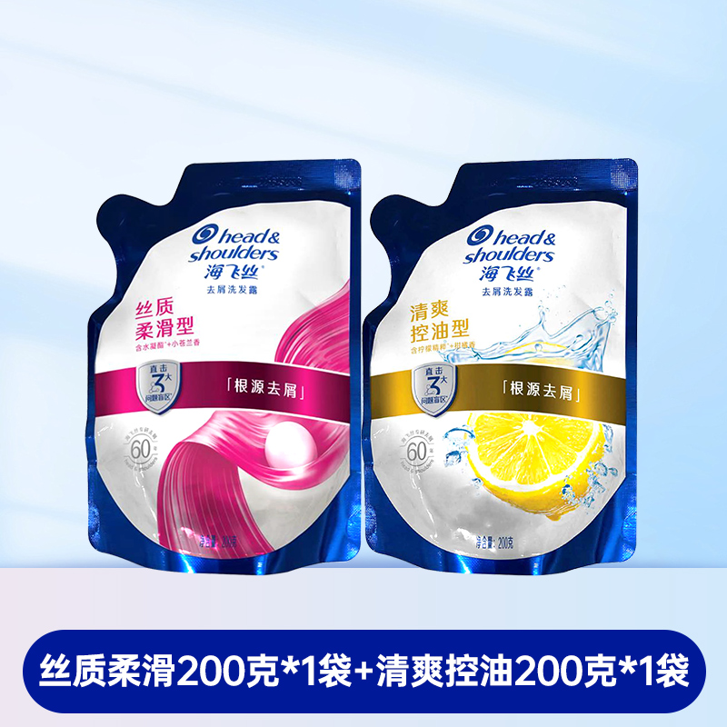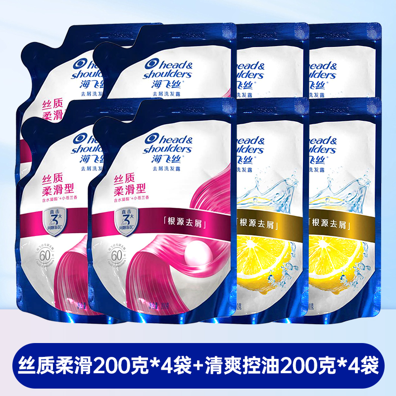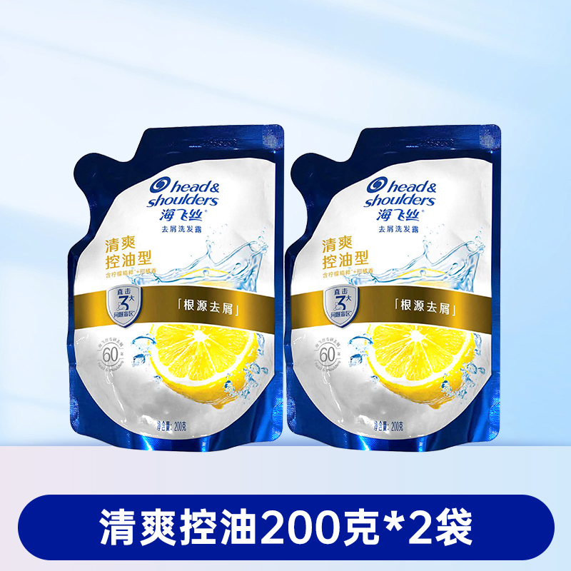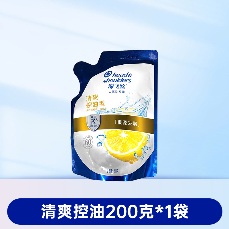海飞丝去屑洗发水清爽控油丝滑柔顺洗发露袋装补充装200g克替换装