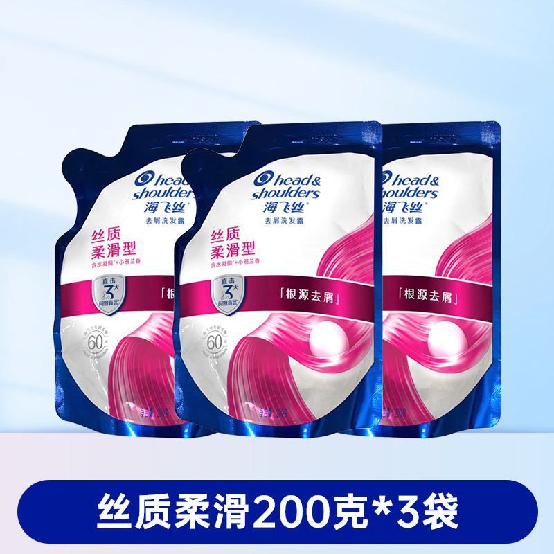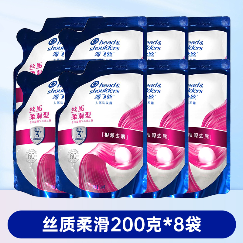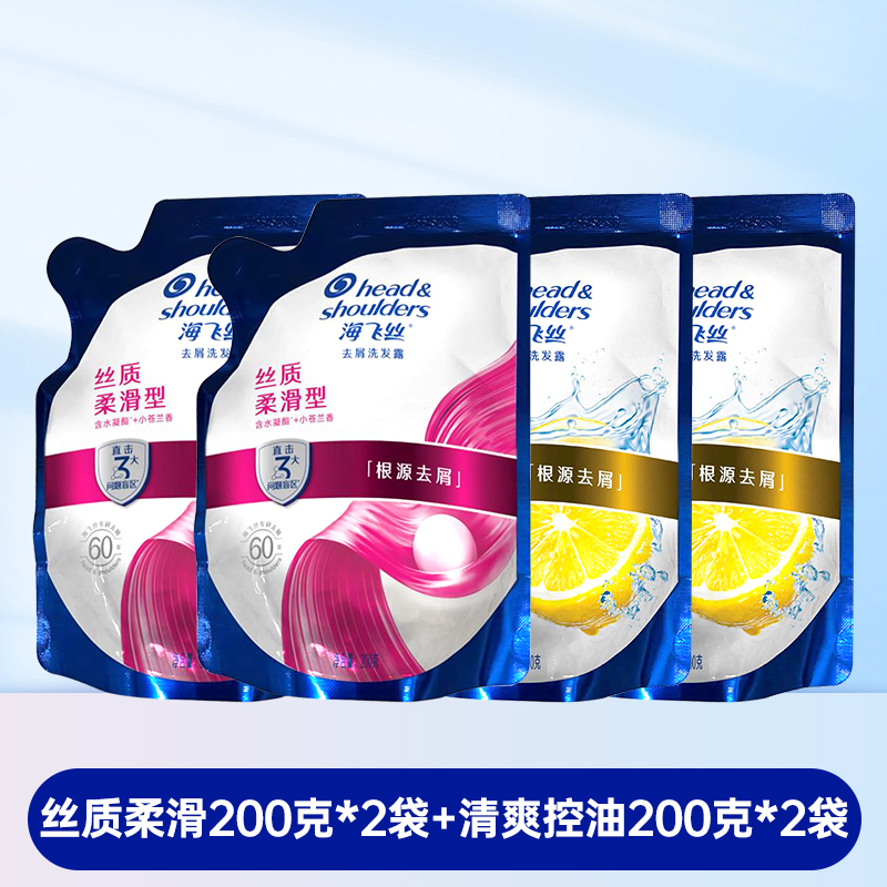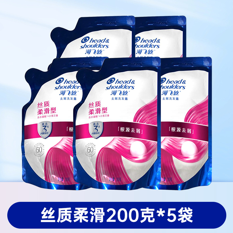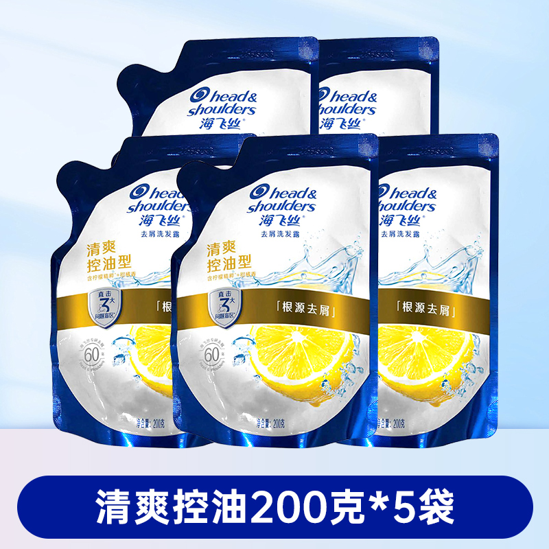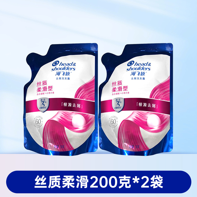 海飞丝去屑洗发水清爽控油丝滑柔顺洗发露袋装补充装200g克替换装