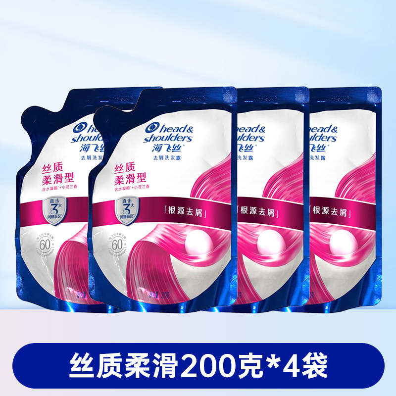 > 海飞丝去屑洗发水清爽控油丝滑柔顺洗发露袋装补充装200g克替换装