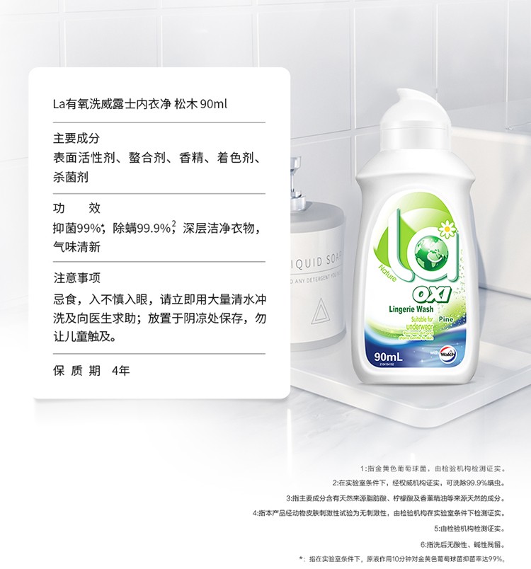 > la有氧洗威露士洗衣液松木香手洗除菌除螨内衣用补充装袋装500ml