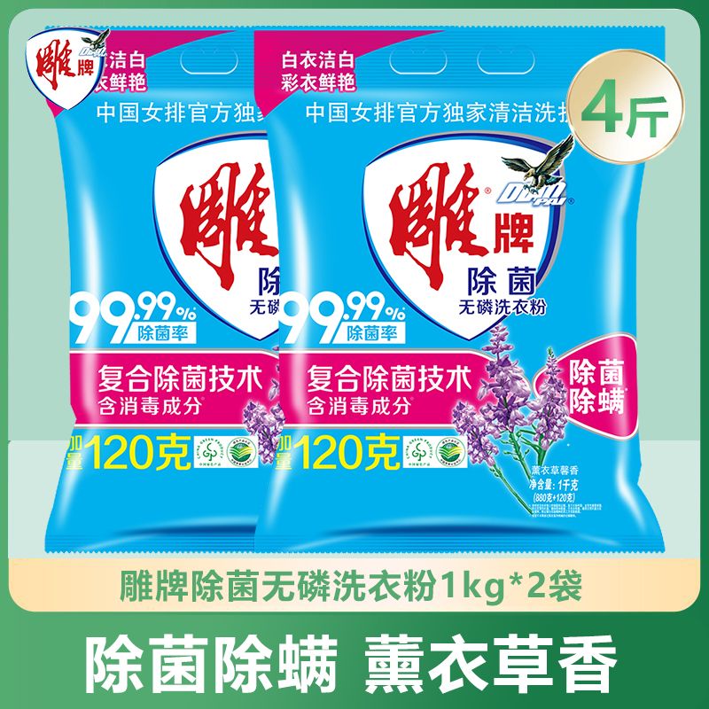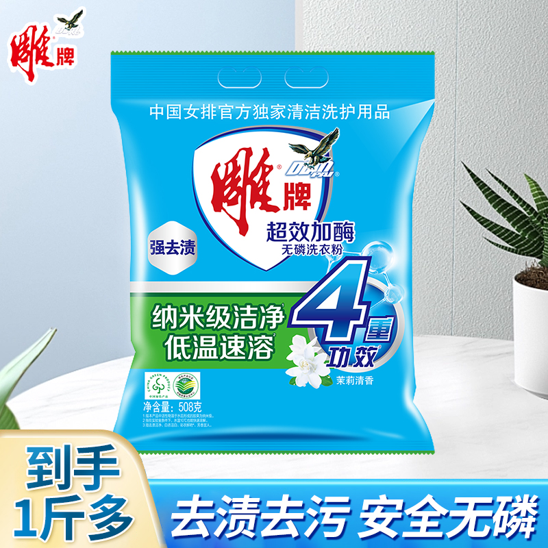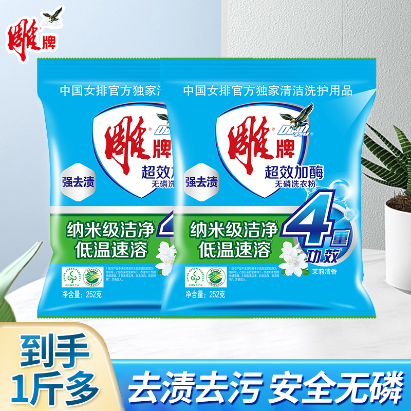 > 雕牌洗衣粉大袋包邮强去污家用实惠装茉莉花持久留香机洗发黄清洁