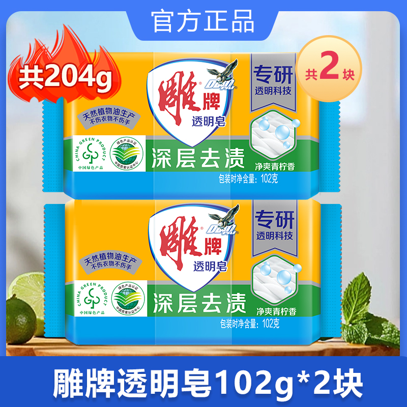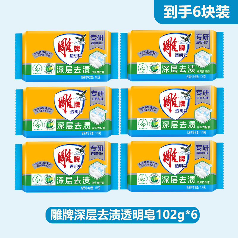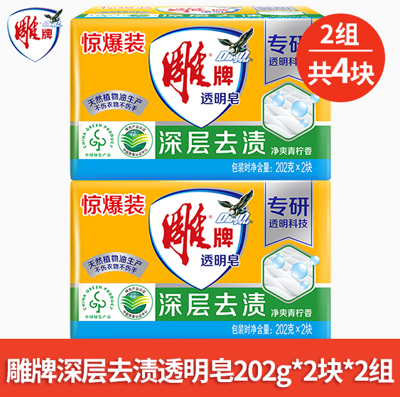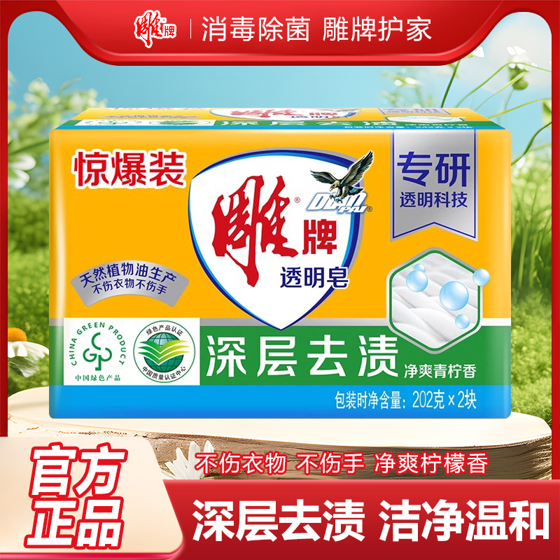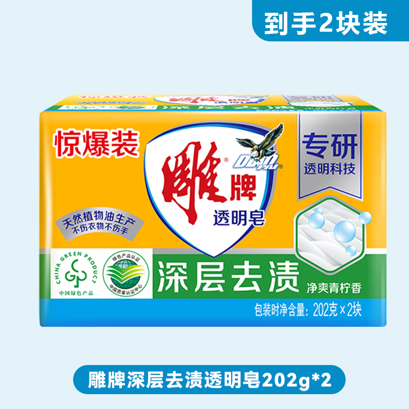 > 雕牌肥皂洗衣皂202g透明皂深层去渍家用家庭装肥皂不伤手官方正品
