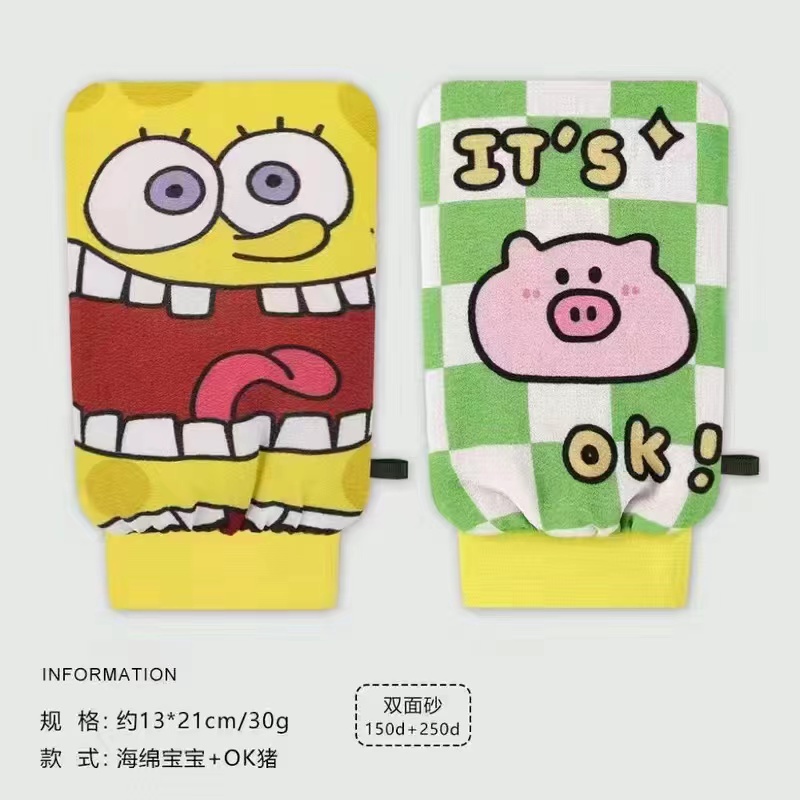 > 卡通搓澡巾男女专用强力无痛搓泥手套家用搓背神器儿童洗澡巾